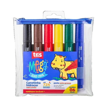 • CANETINHA HIDROCOR MEGAHIDRO SUPER JUMBO 6 CORES