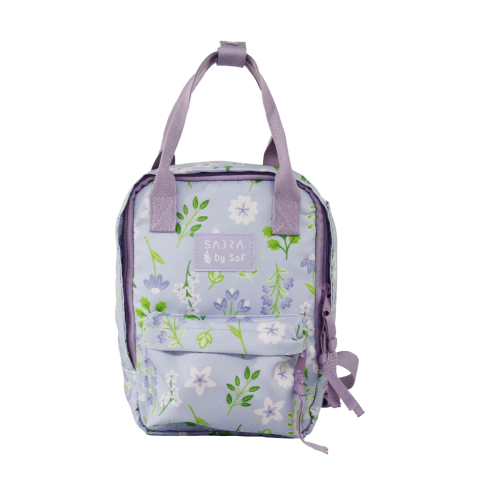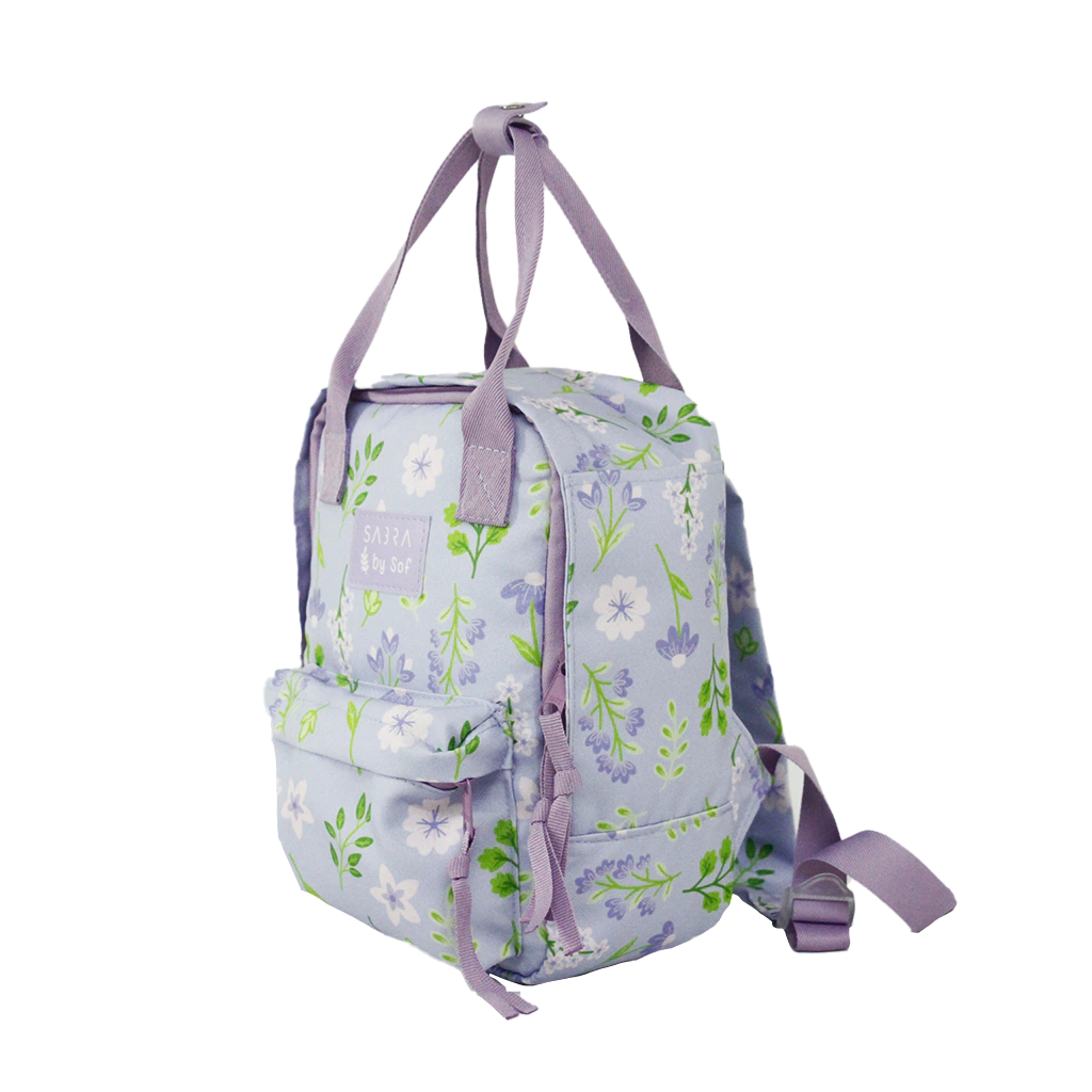 BOLSA MINI MOCHILA QUADRADA BY SOF FLORAL LILAS