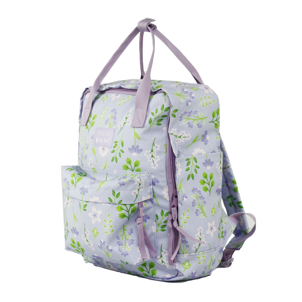 BOLSA MOCHILA QUADRADA BY SOF FLORAL LILAS