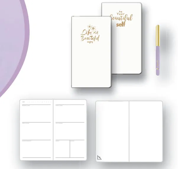 PLANNER SEMANAL E CADERNETA PONTILHADA LAVENDER + CANETA 40F